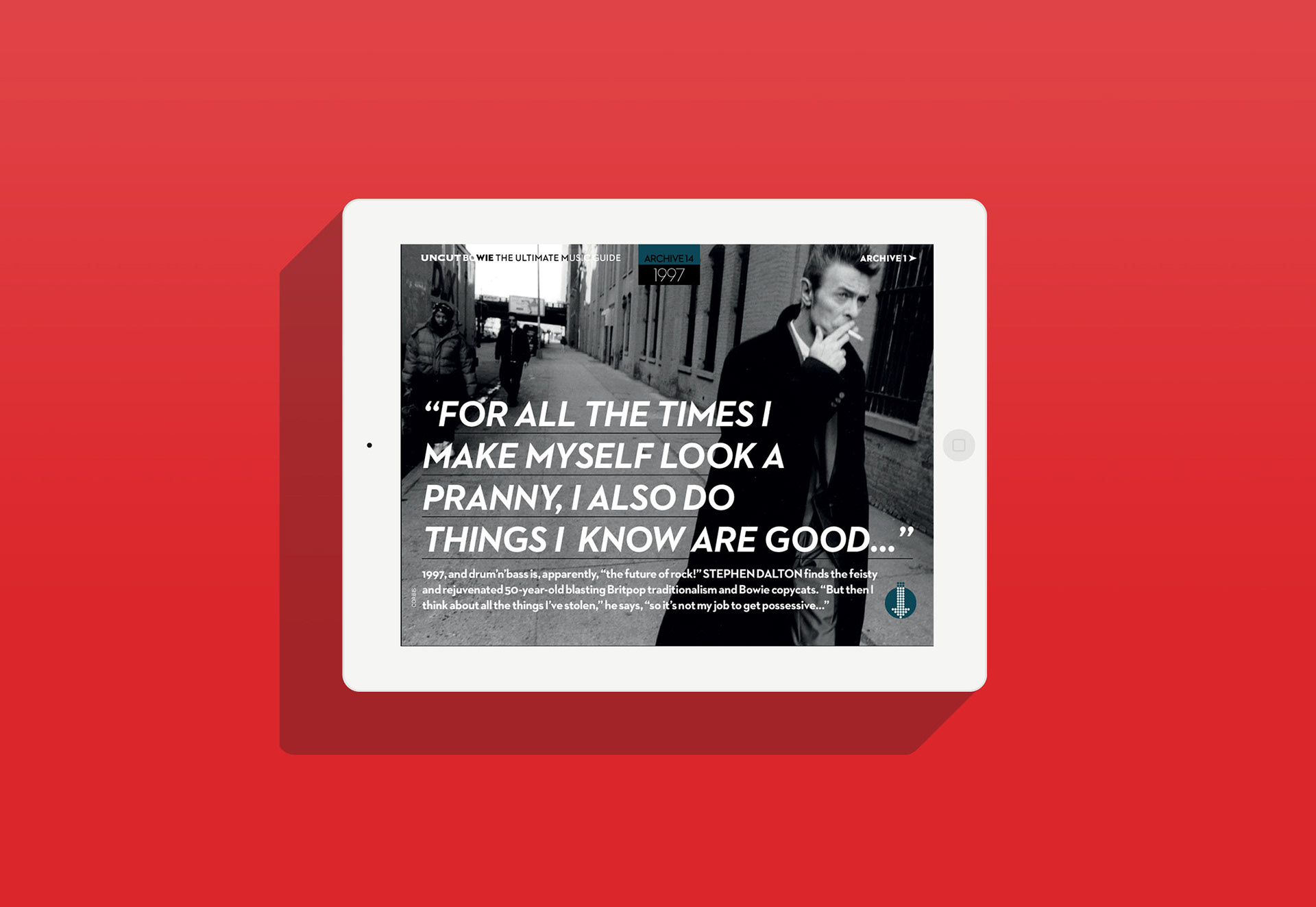 Adapting exclusive content from the archives of the NME and Melody Maker along with reappraisals of his complete discography. The Bowie App contained exclusive galleries, official videos, interactive album viewers and previews of every officially released track.
